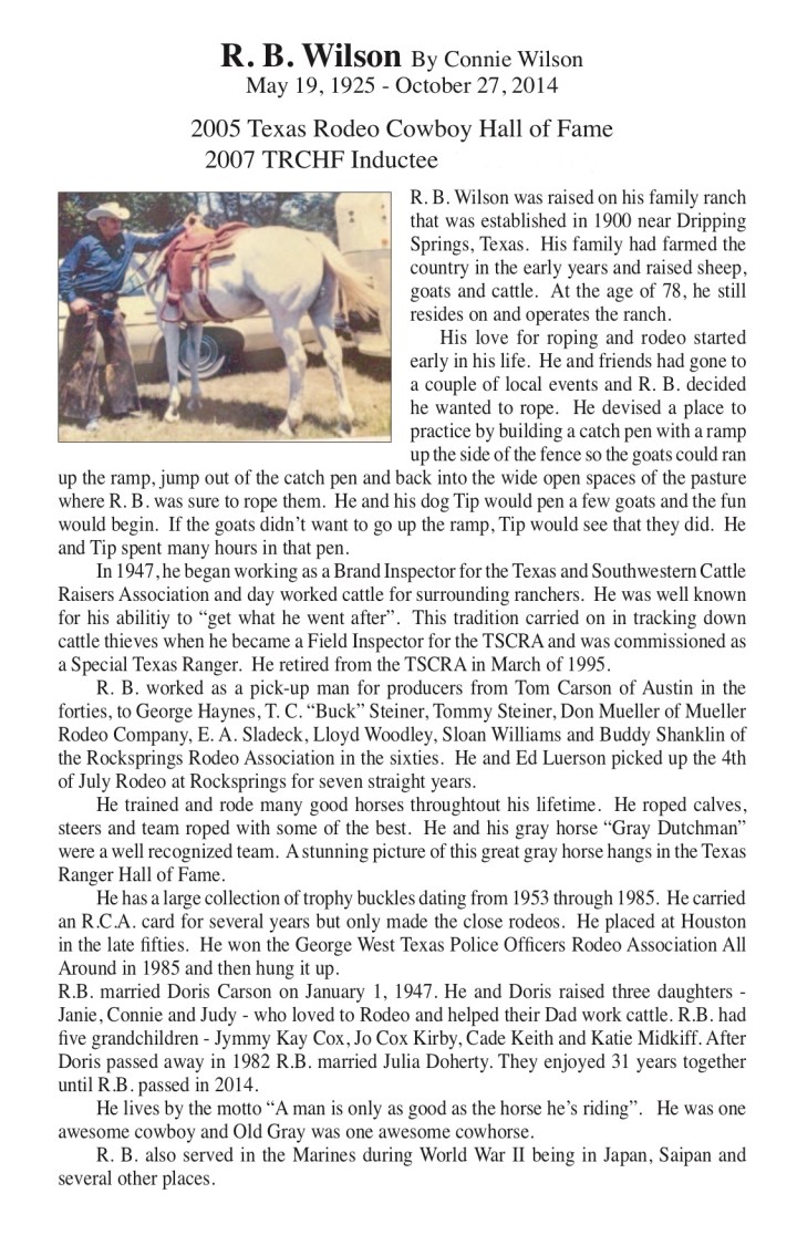 This is a biography that Connie Wilson wrote about her Dad, RB Wilson.