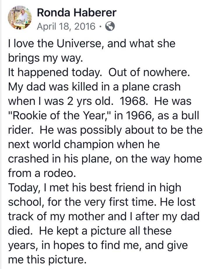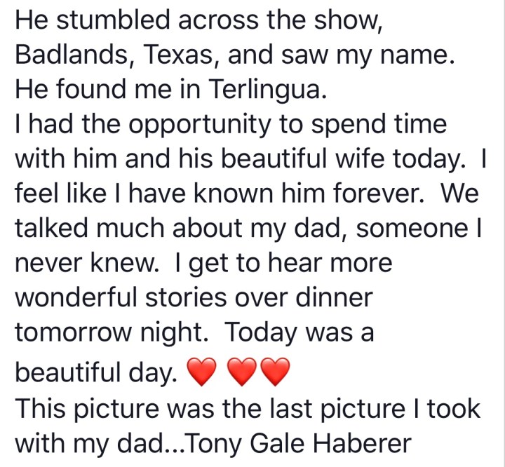 This is the Dad of the very famous TV star, Ronda Haberer of Badlands Texas, the TV Documentary that was on NTGEO.