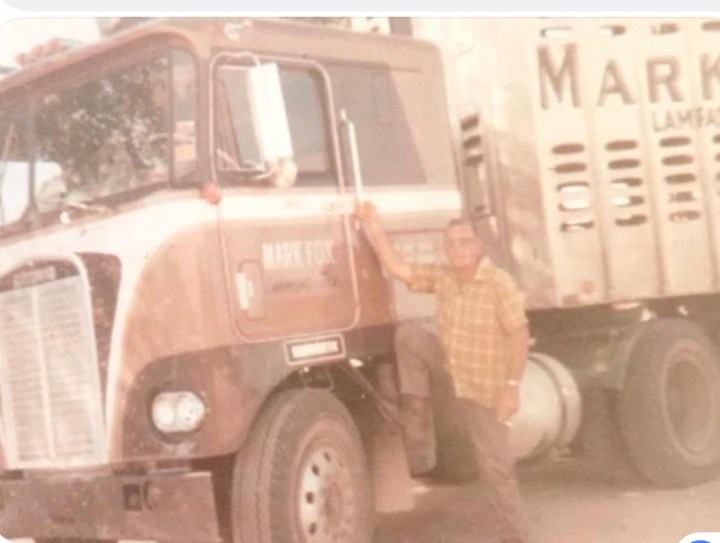 This is the very same truck a couple years later after Mark Fox had bought it from Butch when Butch headed to the Oil Fields and by this time Mark Fox had sold it to my Dad, Cecil Lewis. (him standing beside that old KW Cabover) When Butch had it, it was White & Red Gold accents.