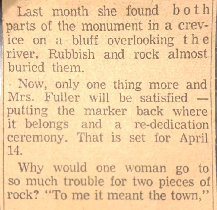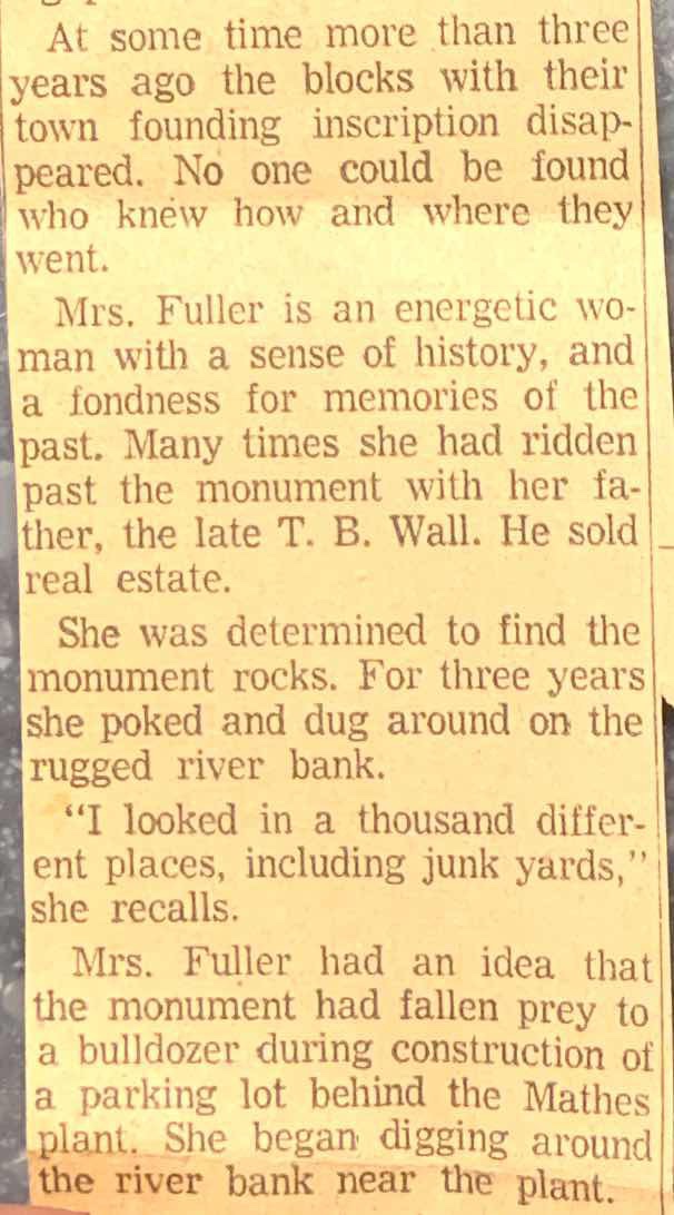 So was the monument disregarded as the clean up was done when the building was finally torn down in 1971. If she looked for it for 3 years bringing the date to 1974, was the granite monument put back at the factory site or was it stored from then until 2013 when a new metal marker was placed in front of River City Grill and the granite one was moved to its location next to City Hall?