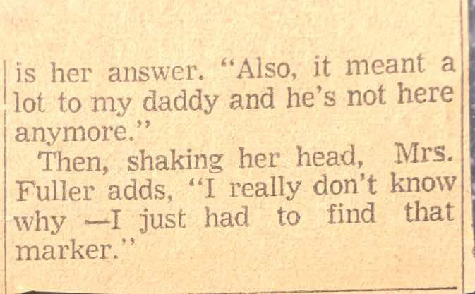 Mrs. W.W. “Iva” Fuller was a tenacious woman and this article demonstrates that. I talked to her daughter, Mary Alice, but she doesn’t remember the actual date of the article.