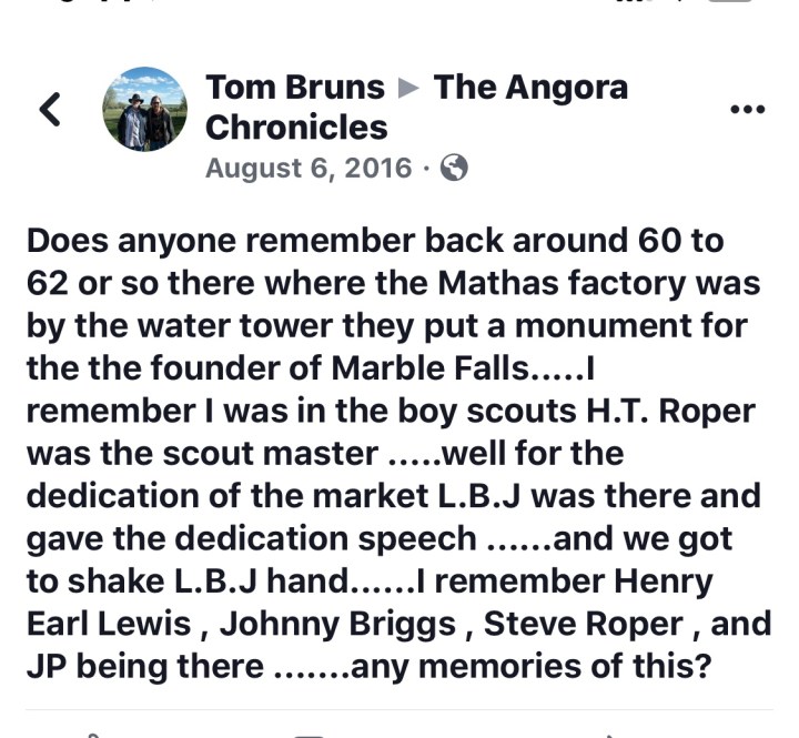 The monument was moved or rededicated in a 1962 ceremony that LBJ attended.