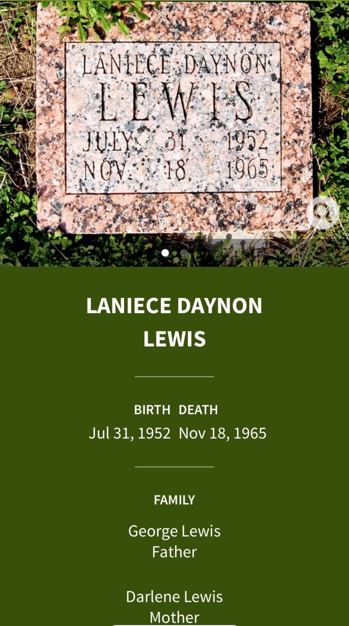 We all knew her as Daynon, however here name was Laniece Daynon Lewis. She is remembered as a very nice and sweet young girl.