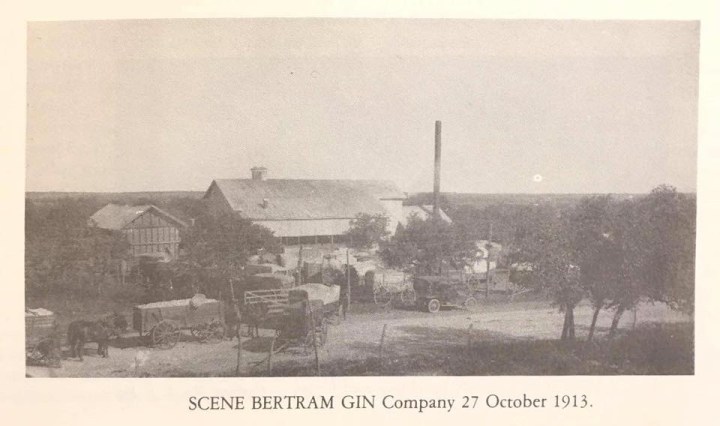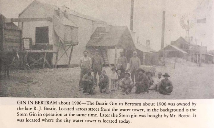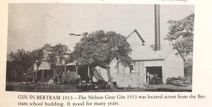 The little town where I now reside, Bertram, had 4 cotton gins at one point. I think I’ve read that it also had about that many banks. The soil around this area is more suited to ranching than farming, but that didn’t stop the industrious folks from making the most of black land areas spotted around the county. Besides the four in Bertram, there were other cotton gins located in Burnet, Marble Falls, Spicewood and even in Smithwick the small community I grew up in.