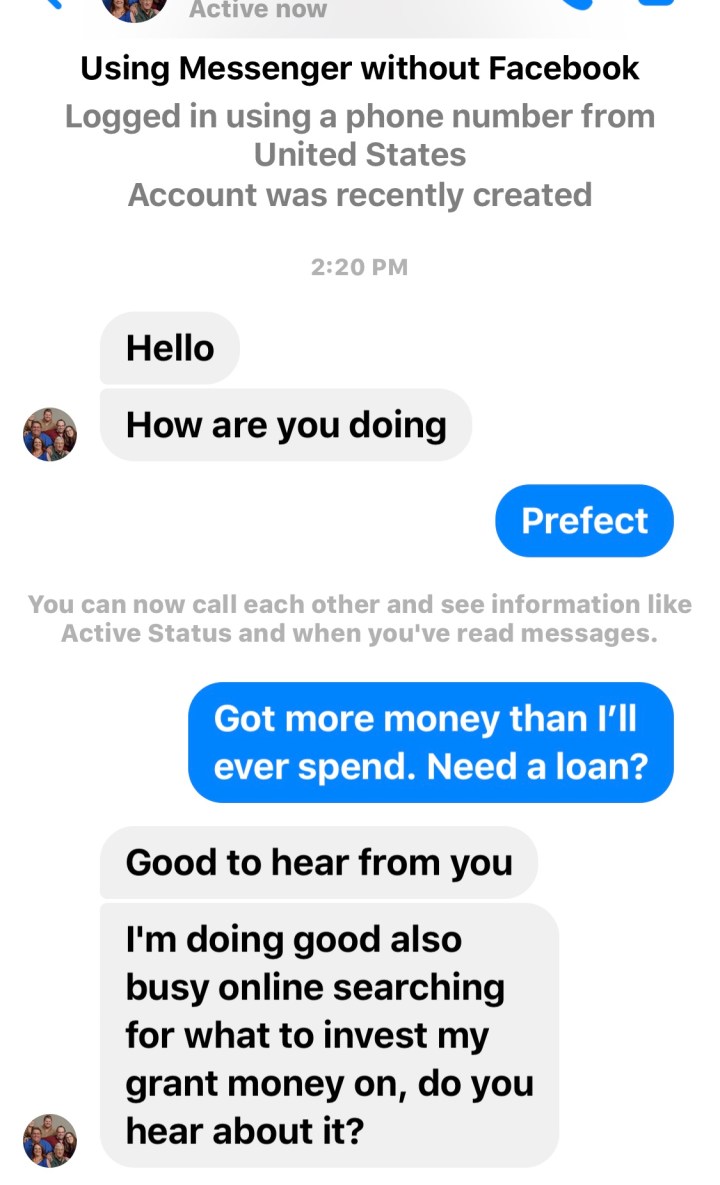 Well I get on average about one of these a day. You can tell by the way the conversations start that it’s not who it should be, using that name.