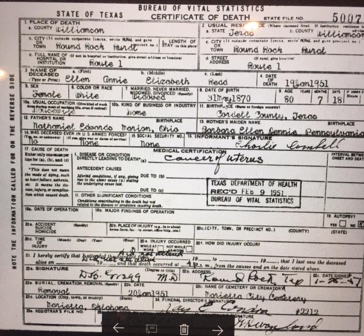 I found out that Charlie and Minnie were living with Mrs. Redd up in Oklahoma in 1930s. The 3 of them were in Burnet County by the time the 1940 census was done. In early 1951 Mrs. Redd died in Round Rock.