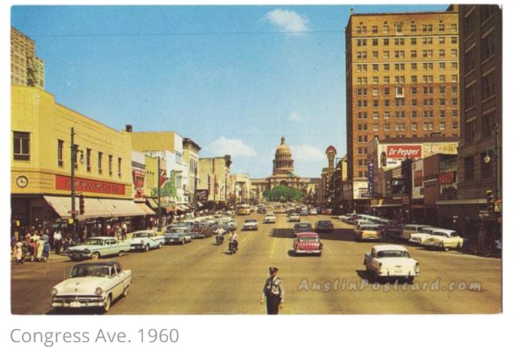 The 1960 census listed the population of Austin at 186,545. So it wasn’t a small place back then. People’s buying habits and customs were just so much different back then. Six decades later the population of Austin was just over five times as large, to just under a million people. But look at the difference in places to eat, shop and entertain ourselves. More than 5 times as many. More than 50 times as many, it seems like. Count the number of movie screens then and now. There is a fast food place on every corner. More Shopping Centers and Malls are popping up each day. Compare the number of supermarkets then and today, let alone the floor space of each.