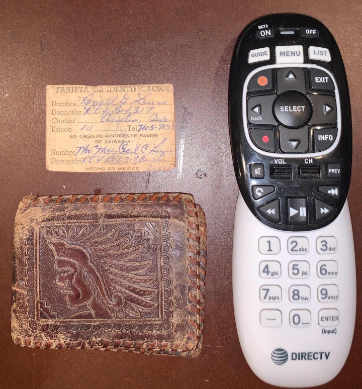 The remote isn’t really old, but is being used to demonstrate the small size of that wallet.