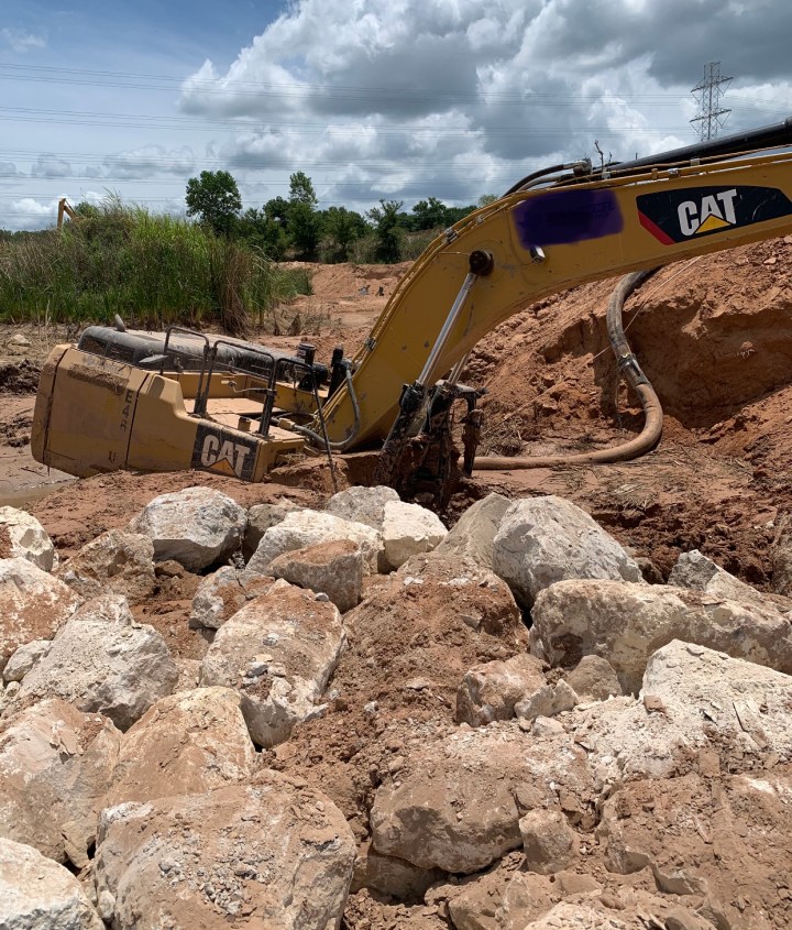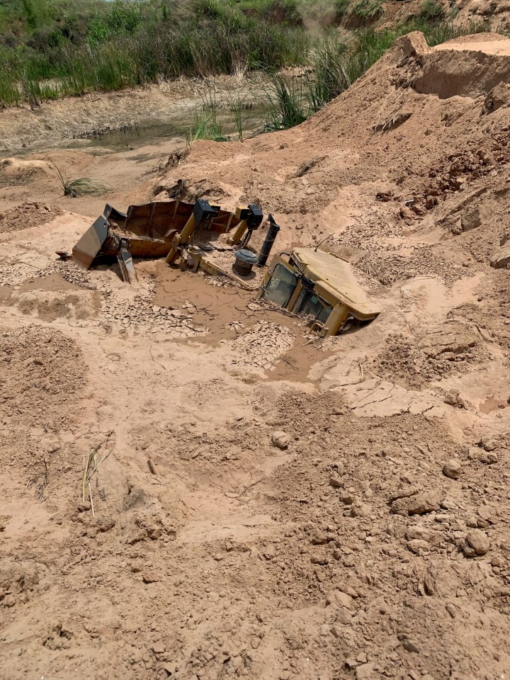 1. Well I posted on Facebook. After a week, they were able to pump all the water and quick-sand out from around it and brought in a huge crane and lifted it out and set it on a truck to be hauled in for needed repairs.