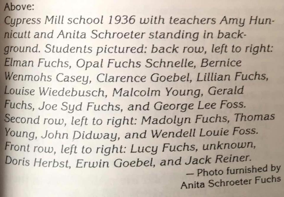 The Early Days, The History of Texas Cypress Mill School – North Blanco County, Texas. The last photo is the old gristmill that gave the community its name. Share this: Click to share on X (Opens in new window) X Click to share on Facebook (Opens in new window) Facebook More Click to email a link to a friend (Opens in new window) Email Like Loading...