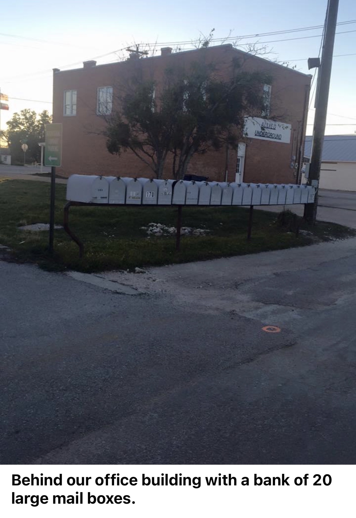 Within a few minutes the Post Mistress was standing in my office with an offer. She would go buy us and other downtown businesses mailboxes. Would I be able to help her put in some posts to mount them on? We struck a deal and a few days later and ever since the folks in the business district of Bertram have had their mail delivered.