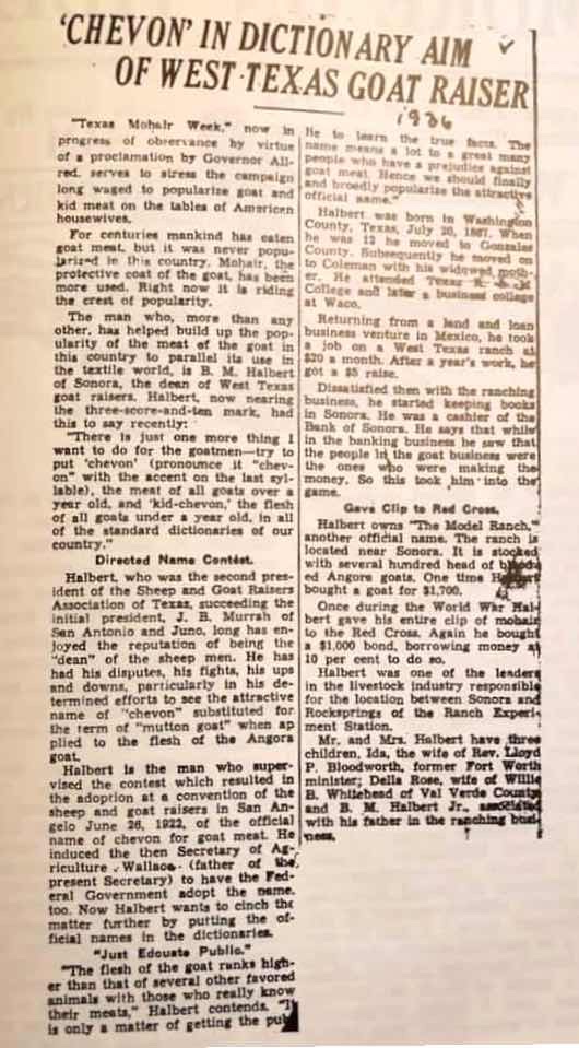 We were simple folk at Smithwick. We never called it Chevon and I didn’t hear the word Cabrito used until I was grown. It was just Goat Meat.