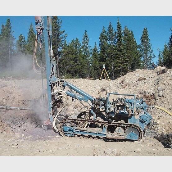 After going down close to 100′, they hit water. When drilling with a track drill, the operator would stand right next to the hole being drilled,so all of the dust and rock cuttings being blown from the hole come out and cover the driller. Very few jobs could be dirtier.
