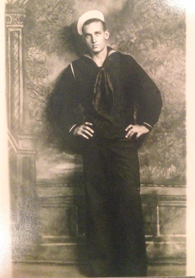 My Dad went away at an early age to fight for this country, during World War II. The picture shows him at the age of 17. He served most of his time on the USS South Dakota, a battleship.