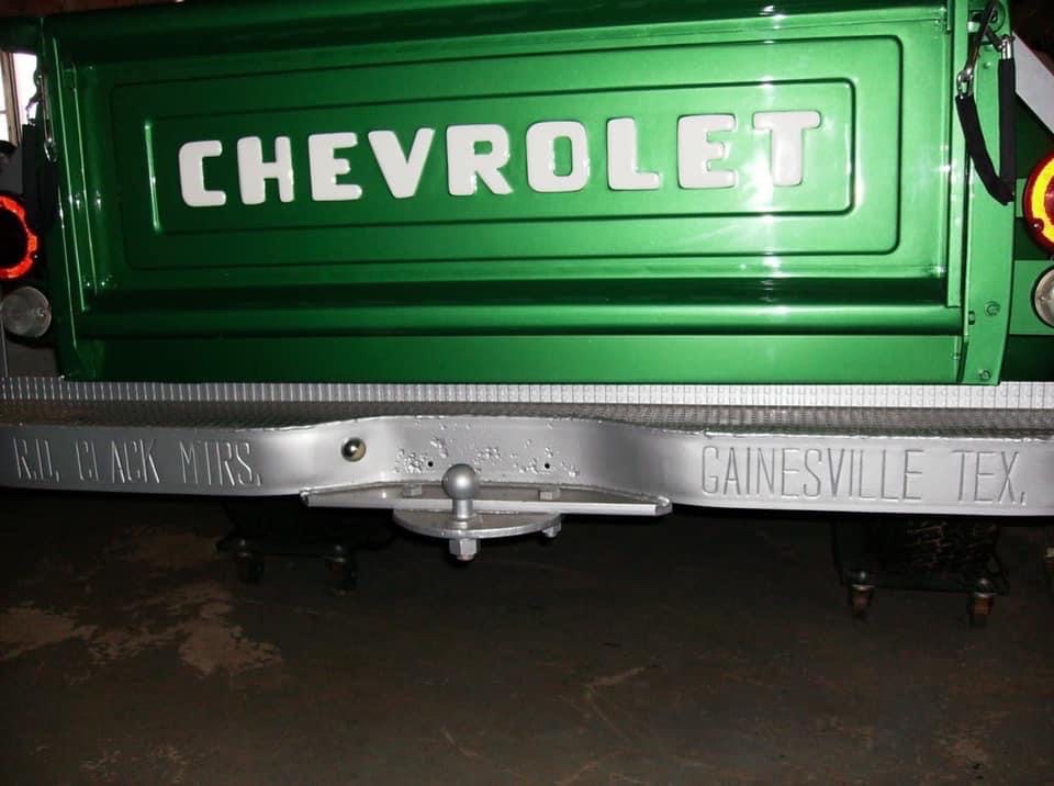 Dealerships around the state ordered pickup trucks without rear bumpers. D & D Bumper Works in Seguin, Texas made very sturdy steel bumpers with the dealership name and location stamped in and highlighted with paint. That became a rolling advertisement for the dealership.