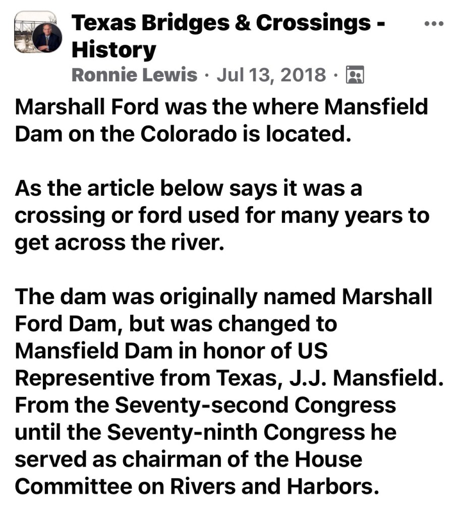 Marshall Ford is where the Mansfield Dam is built on the Colorado River of Texas.