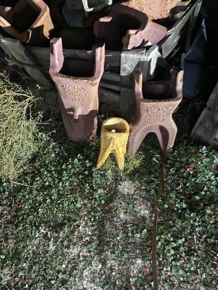 This is a sampling of how we welded teeth together (this was later on, when we started fabricating teeth to use on either side of the bucket to change the ditch widths, without needing to buy so many different side buckets).