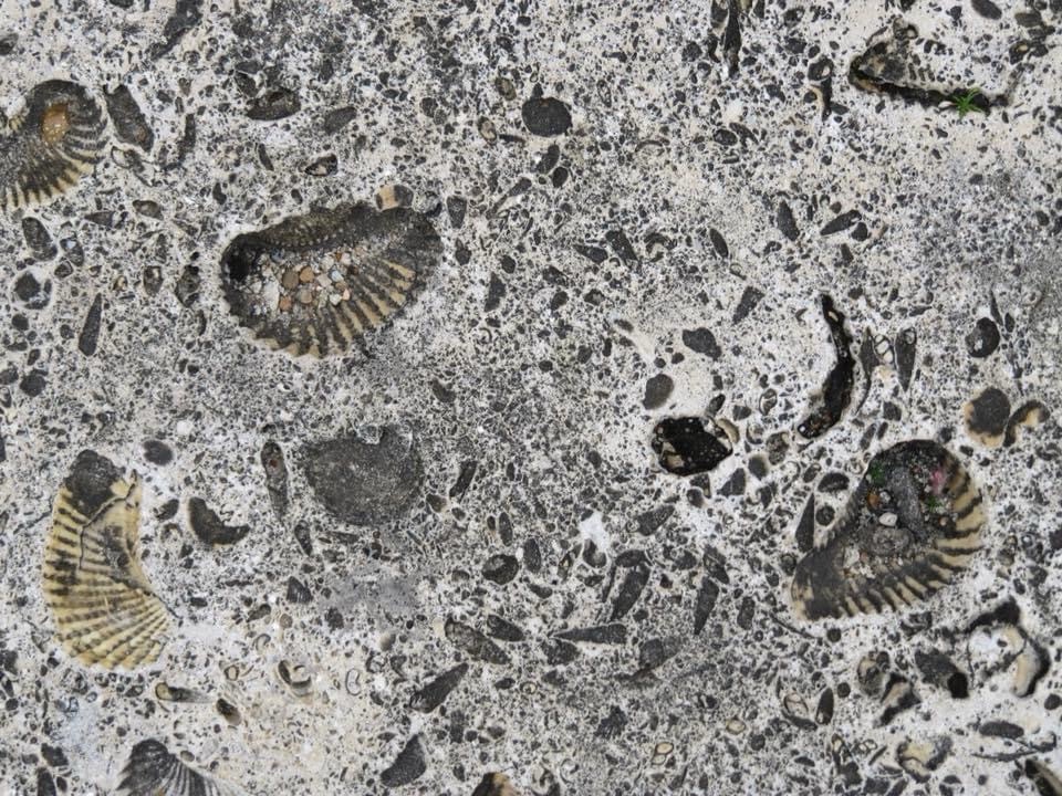 On many high rise buildings around Texas (and as far away as Washington DC) this type of stone cladding has been used. It’s fossilized appearance gives it a very distinctive look. It has been used for decades on schools, museums, office buildings and even the San Jacinto Monument. It is mostly referred to Cordova Fossil Stone (trade-name). It seems to be mostly all quarried out now, with other types of stone taking over.