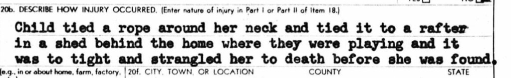 Many of us remembered it being reported that she died as result of suicide. Sometime during our discussions it was discovered that her death certificate listed cause of death as below: