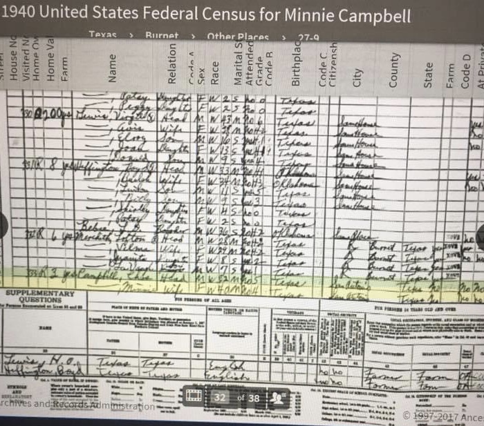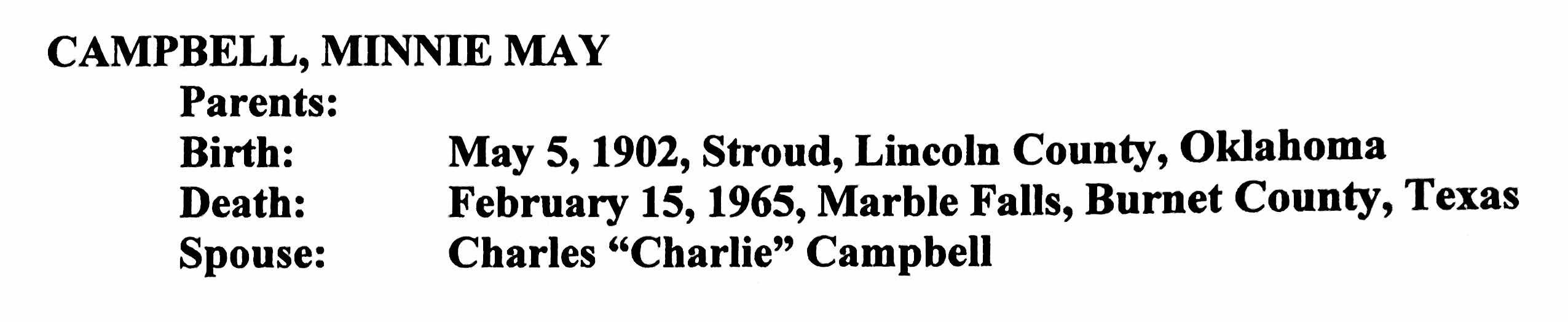 I found out that Charlie and Minnie was living with Mrs. Redd up in Oklahoma in 1930. The three of them were in Burnet County by the time the 1940 census was done. In early 1951 Mrs. Redd died in Round Rock. Charlie signed the death certificate.