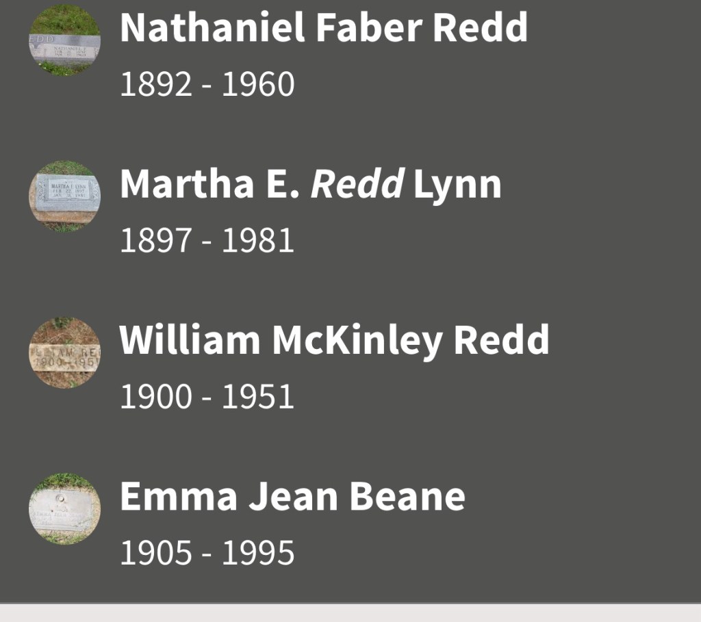 I could remember that Mrs. Redd, Minnie’s Mother, it was told was with them when they first came to our family part of the county. Which was a long time before I came along.