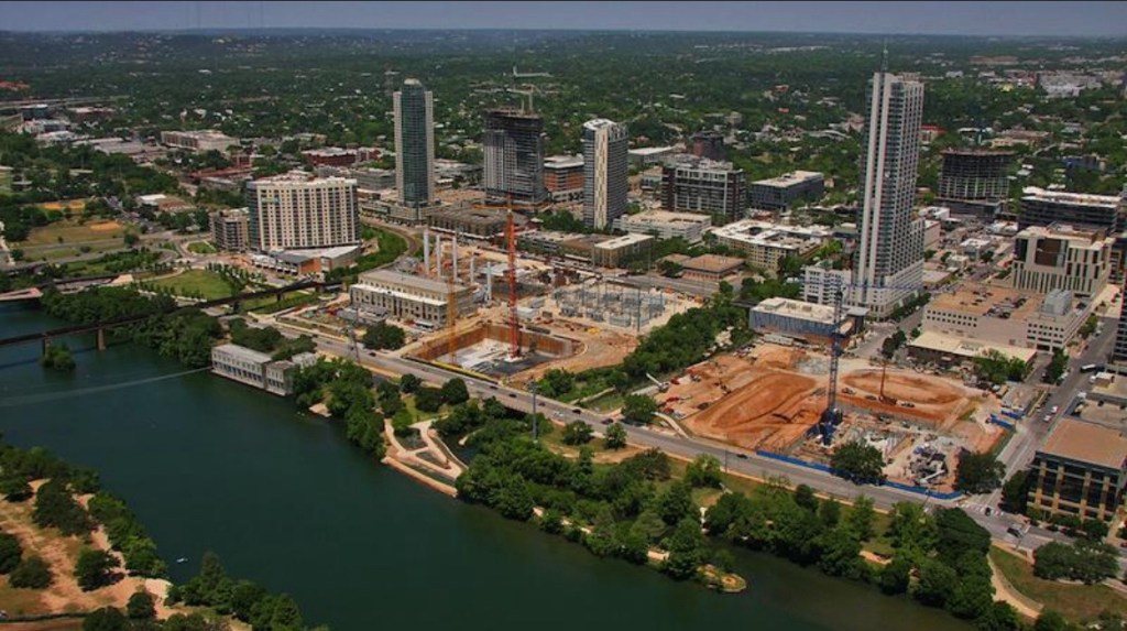 This was taken south of the river looking north, a few blocks from the Austin Train Depot.