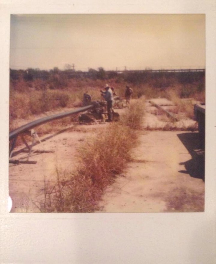 Construction Method: We put all the pipe up on the old Mathis Factory Slab (left there when the building was torn down) and fused it together. We set a D-8 Caterpillar Dozer down in the river bed. Ran cables up and tied on to the end of the pipe and started pulling it across. After getting one across we pulled the next line.