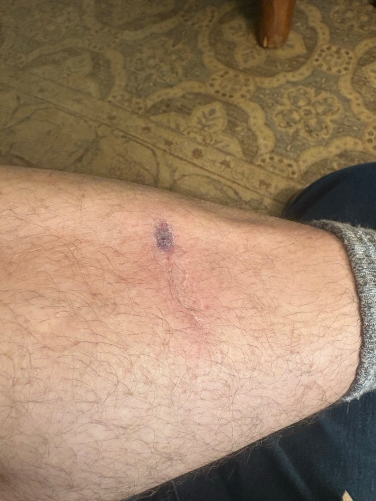 Then we noticed I was sitting in a bed of red ants. That caused me to get right up and start moving around, declaring I was fine.